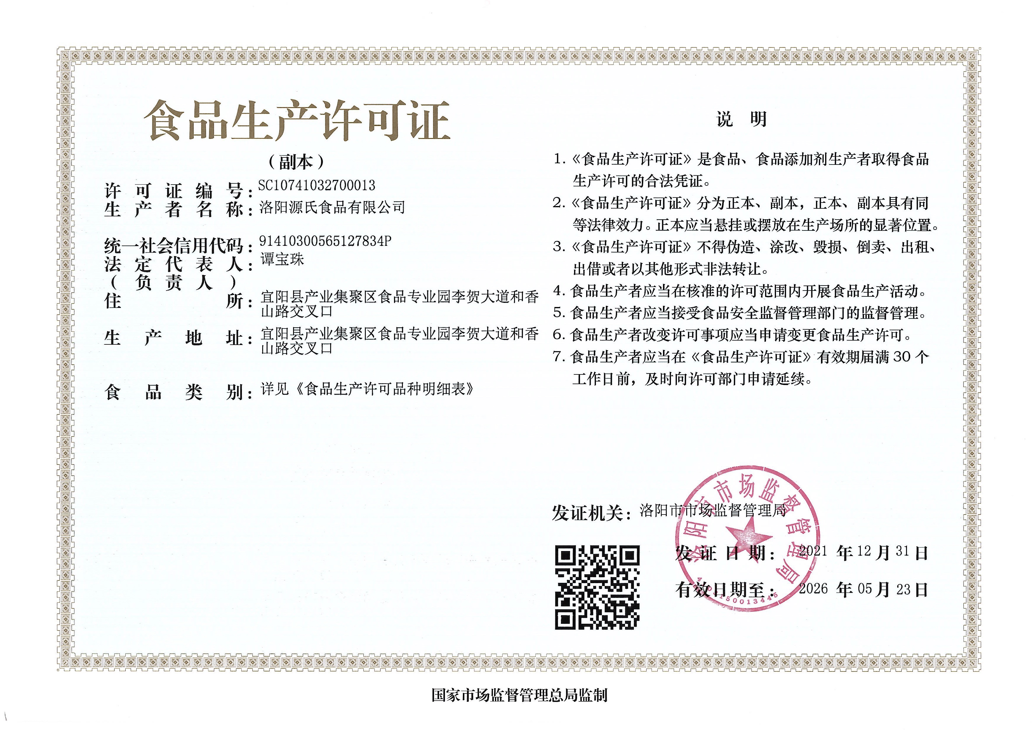 KAIYUN食物生产允许证及细节列表